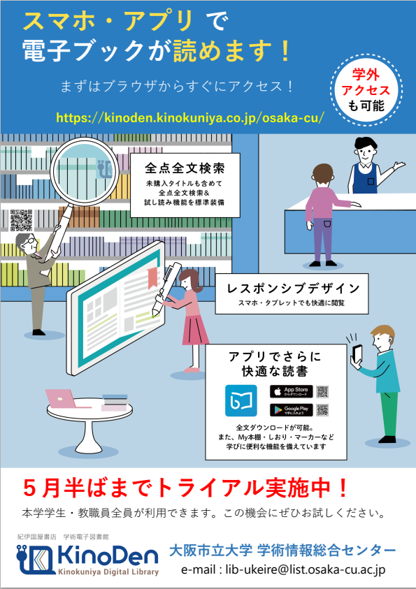 4/21づけでお知らせしたKinoDen電子ブックトライアルは、5/12の夜に終了します。