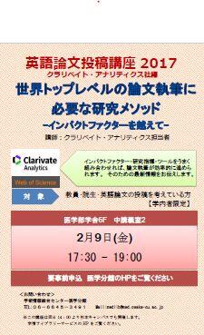 英語論文投稿講座クラリベイト・アナリティクス社 2/9(金)