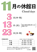 開館/休館スケジュールの詳細は、開館カレンダーでもご確認いただけますが、休館日や開館時間は臨時で変更することがあります。