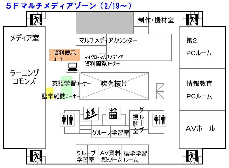 5Fマルチメディアゾーンのリニューアルに伴い、2/18(木・休館日)にラーニング・コモンズ内のブース撤去を行ないます。