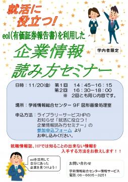 就活に役立つ! 企業情報読み方セミナー(11/20)【学内者限定】