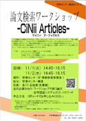 日本語論文検索ワークショップ「CiNii Articles」を開催します。