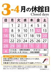 3月は3/20(土)の祝日のほかに、大学の春休みに伴って日曜日が休館となります(4/4まで)。