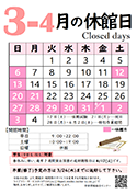 また、春休み(~4/3)に伴い、日曜休館となります。