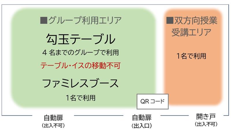 ・南側の席は従来通り発話可能な双方向授業受講席として利用してください(詳細は下図参照)