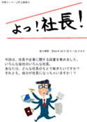 2F企画展示『よっ!社長!』(10/22-11/16) 投稿日時 : 2014/10/22 杉本図書館管理者 カテゴリ:(終)2階展示 今回は、社長や企業に関する図書を集めました。いろんな会社のいろんな社長。あなたは、どんな社長のもとで働きたいですか?それとも、自分が社長になっちゃいますか!?図書リスト(PDF)